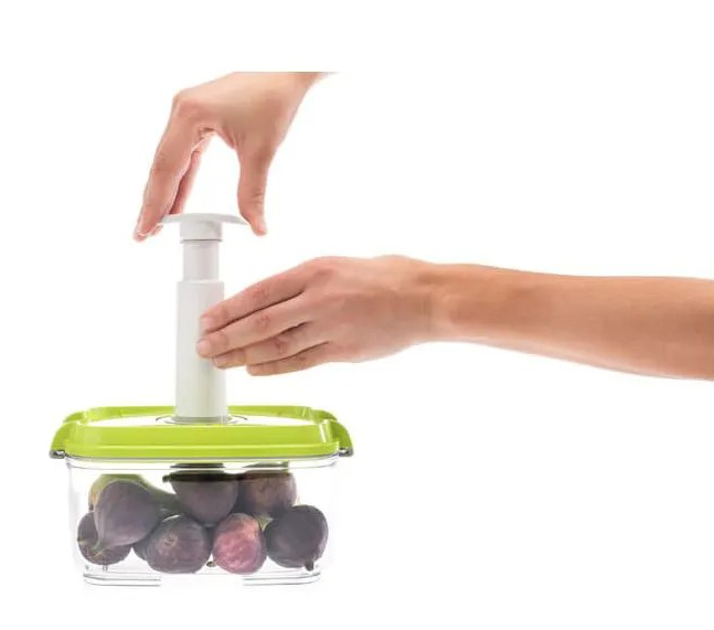 Pomocí ruční vakuovací pumpy, která je součástí sady, jednoduše odsajete vzduch z nádoby, čímž vaše potraviny ochráníte před vnějšími vlivy. Kromě ruční pumpy můžete použít i elektrickou vakuovací pumpu nebo vakuovačku potravin s funkcí CANISTER.Snadné skladování