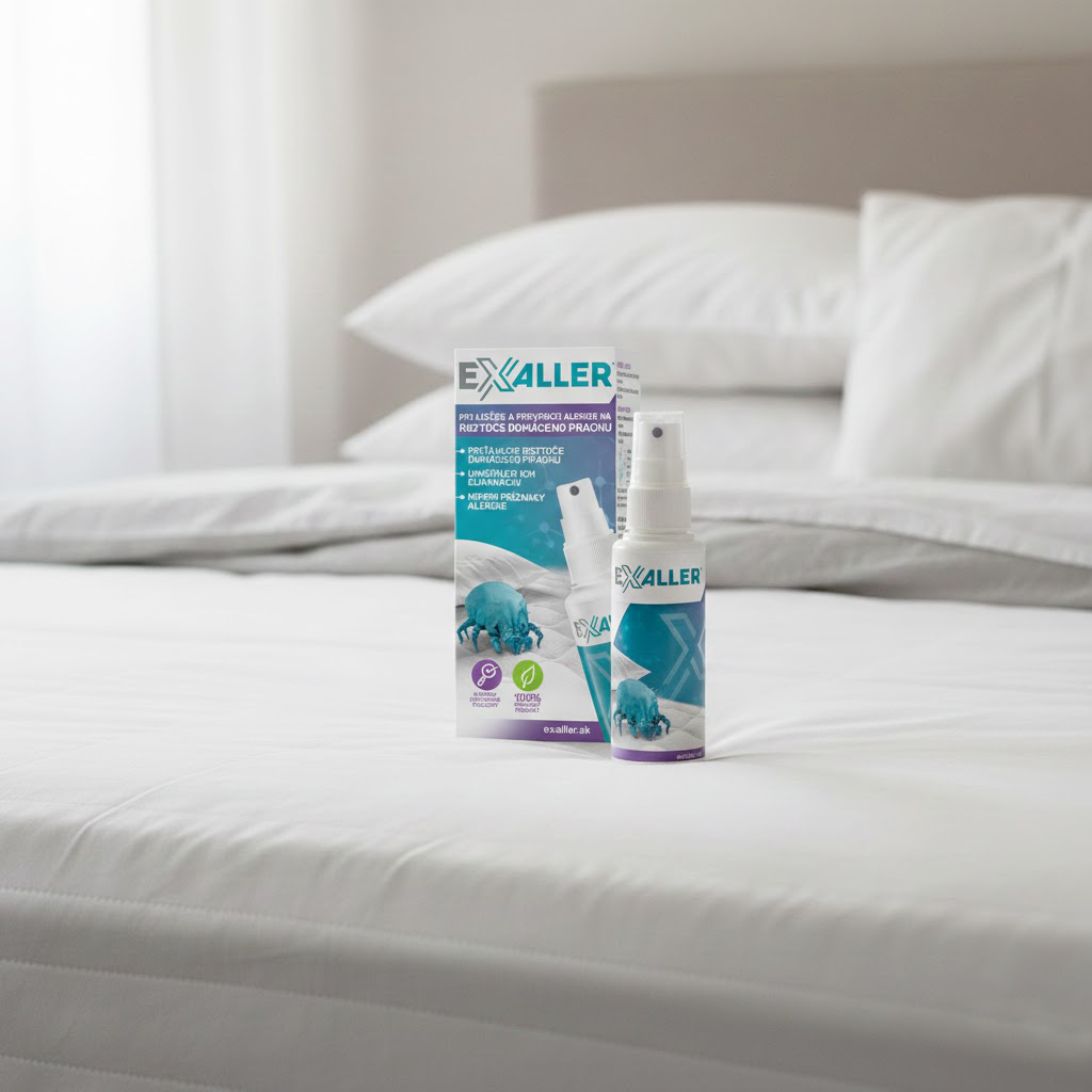 Přípravek proti roztočům ExAller® přitahuje a eliminuje až 99 % roztočů domácího prachu, kteří se běžně vyskytují v matracích, polštářích, přikrývkách, čalounění, kobercích nebo plyšových hračkách. Účinkuje již po první aplikaci a přináší rychlou úlevu od alergických obtíží.