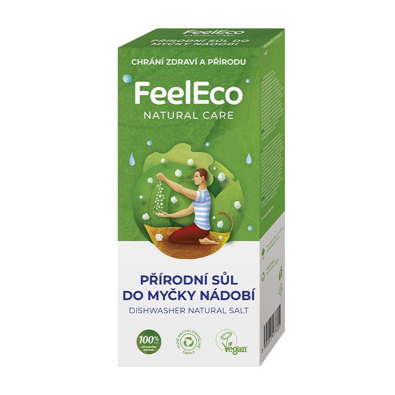Produkt neobsahuje žádné škodlivé příměsí, které se vyskytují například v kuchyňské soli a snižují účinnost změkčovače vody nebo dokonce poškozují myčku.Hlavní benefity soli do myčky Feel Eco