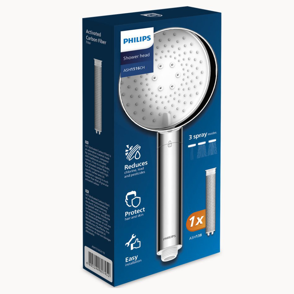 Sprchová filtrační hlavice Philips AWP1516CH s 99% účinností snižuje obsah zbytkového chloru a dalších nečistot ve vodě, jako jsou rez a usazeniny. Chrání citlivou pokožku před vysoušením a podrážděním. Pokožka bude po sprchování krásně hladká a hydratovaná. Filtrovaná voda má také pozitivní vliv na zdraví a kvalitu vlasů.
