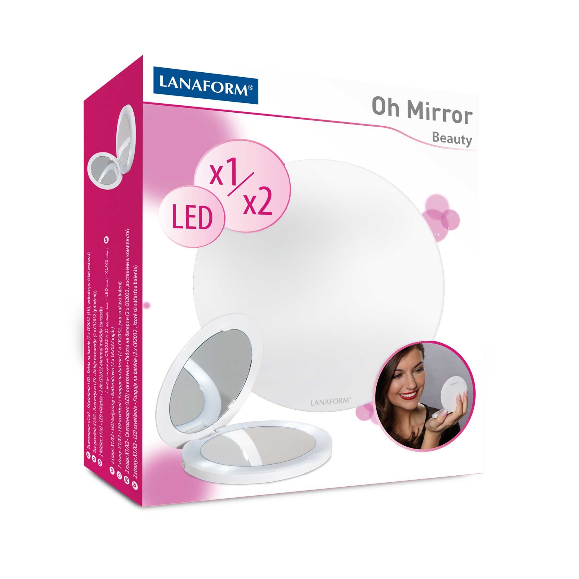 Kapesní kosmetické zrcátko Lanform Oh Mirror v barvě bílé perleti nesmí chybět v žádné kabelce. Má dvě reflexní plochy, jednu bez zvětšení pro běžnou kontrolu vzhledu a druhou s dvojnásobným zvětšením pro přesné líčení.