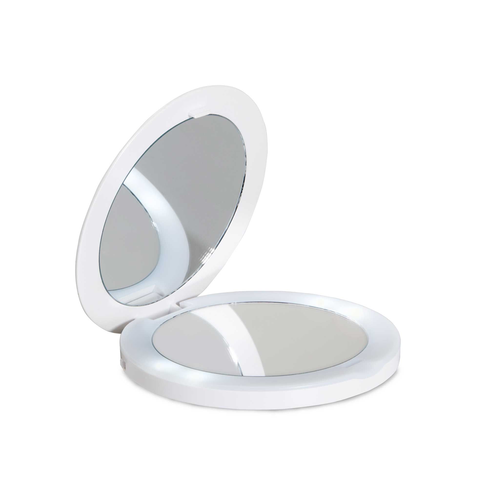 Rozměry jsou dostatečné pro kontrolu pleti i líčení, přesto je zrcátko velice skladné. Odrazové plochy zrcátka mají průměr 7 cm. LED osvětlení po obvodu zrcátka umožňuje použití i za tmy. Baterie jsou součástí balení.