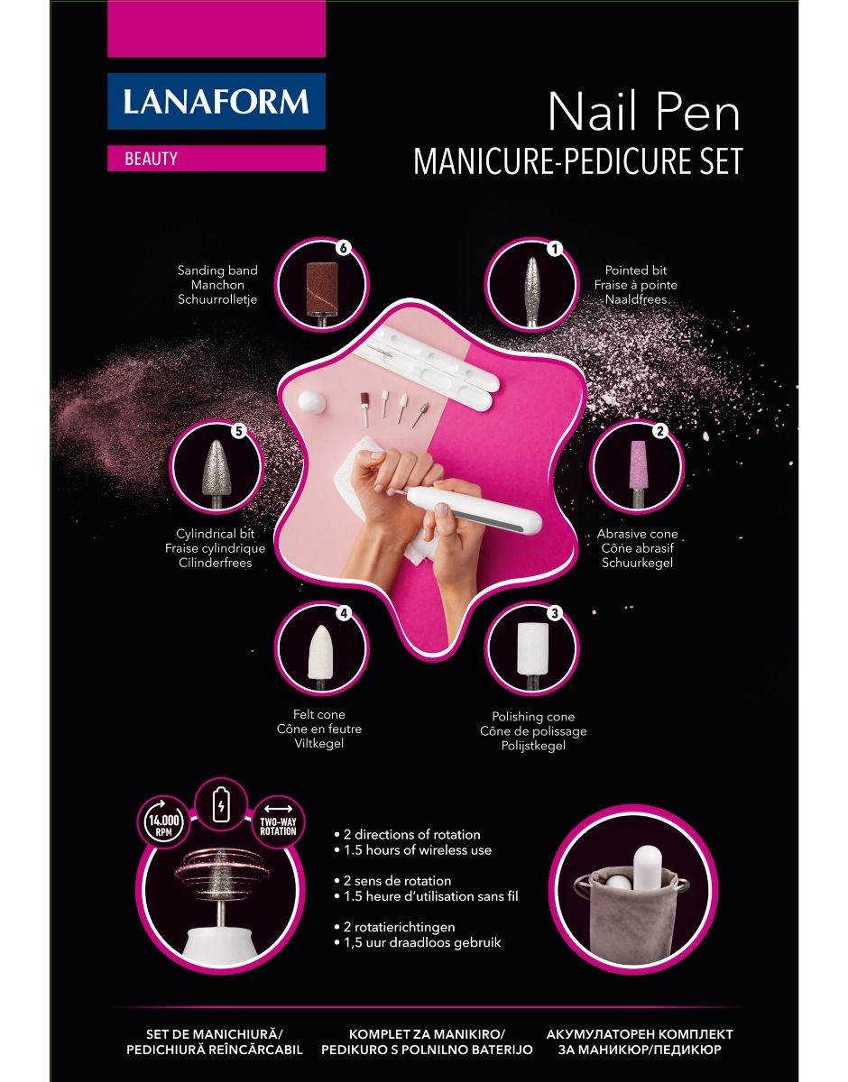 Pero na nehty Lanaform Nail Pen se stane skvělým pomocníkem při úpravě vašich nehtů. Sada 6 vyměnitelných nástavců, uschovaná ve skladném balení, dokáže nehty dokonale vyčistit a vyleštit, pilovat a tvarovat, to vše v obou směrech. Úprava nehtů nebyla nikdy tak snadná. To vše navíc můžete zajistit z pohodlí domova.Multifunkční použití