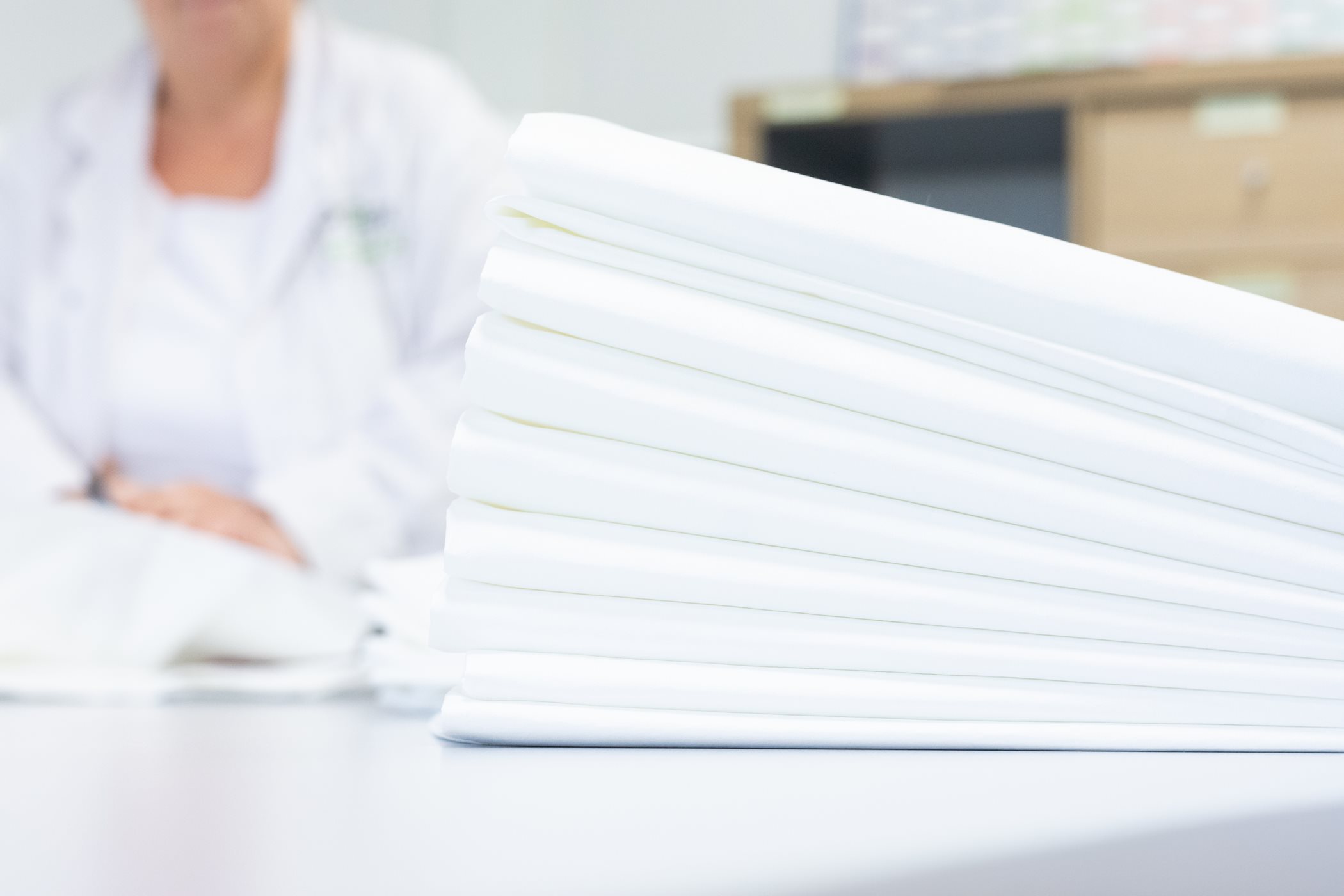 Povlaky ProtecSom jsou vyrobeny z bavlněné textilie s patentovanou vazbou s vysokou hustotou vláken. Tato unikátní technologie tkaní vytváří jemnou síťovinu těsně propletených bavlněných mikrovláken.