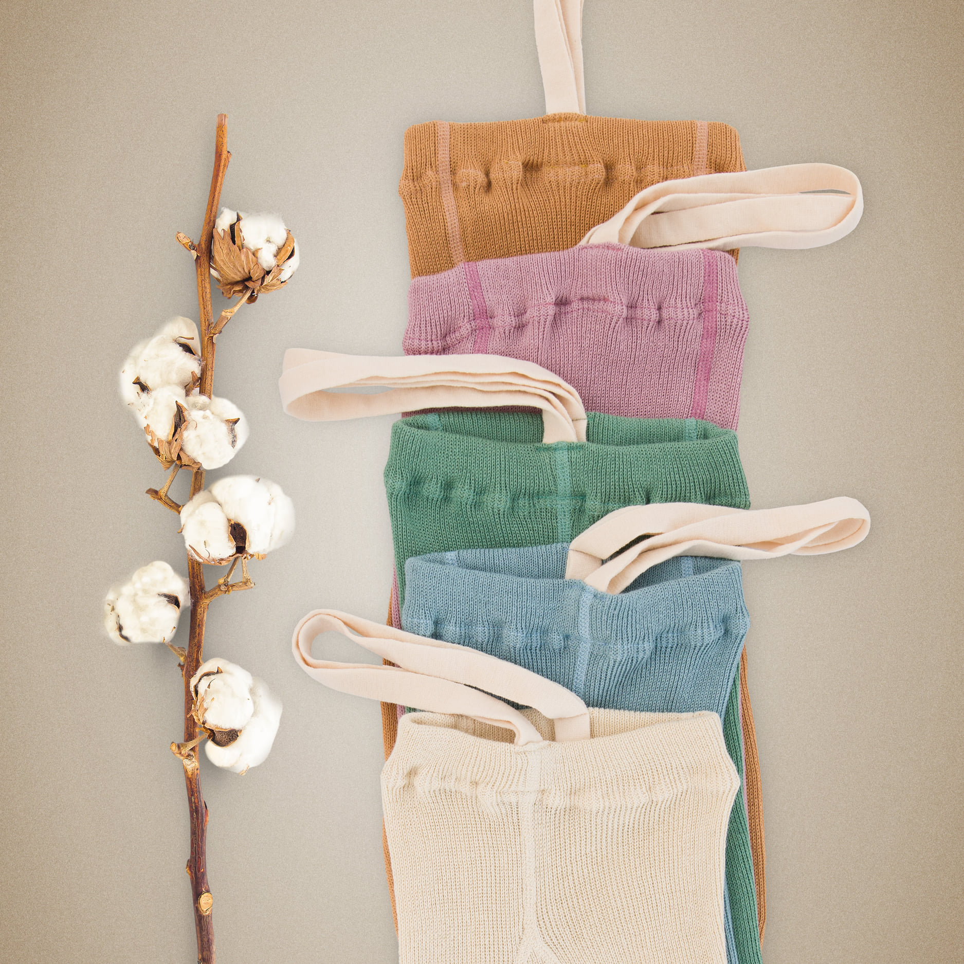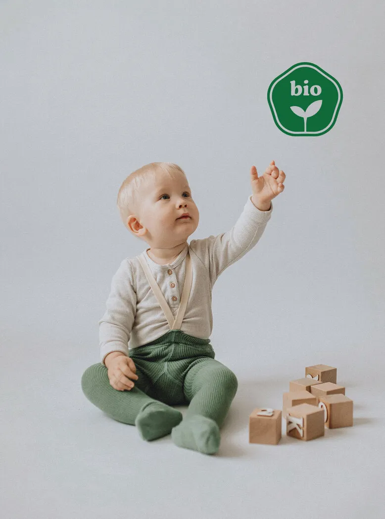 Jsou vyrobeny ze 100% bio bavlny, která je oproti klasické bavlně na dotek mnohem jemnější, měkčí a odolnější. Díky vysoké prodyšnosti může dětská pokožka volněji dýchat. Pro pohodlné nošení jsou punčocháčky opatřeny kšandami.