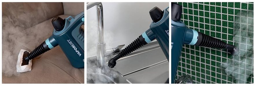 Důkladný úklid bez chemie. Ničí až 99,9 % roztočů, virů a bakterií. Nastavitelný výstup páry. Až 15 minut provozu. Multifunkční příslušenství. Nástavce na mytí oken a čištění čalounění.