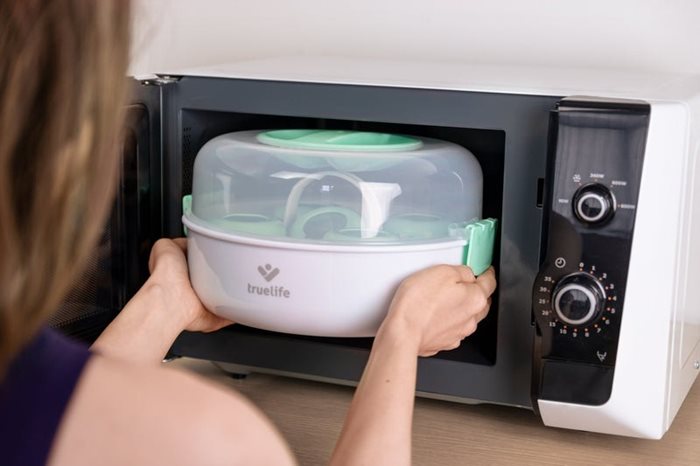 Stačí nalít obyčejnou vodu, umístit láhve a další drobnosti do sterilizátoru a vložit do mikrovlnky – nic víc. Není nutné vařit, přidávat tablety ani jiné chemické přípravky.
